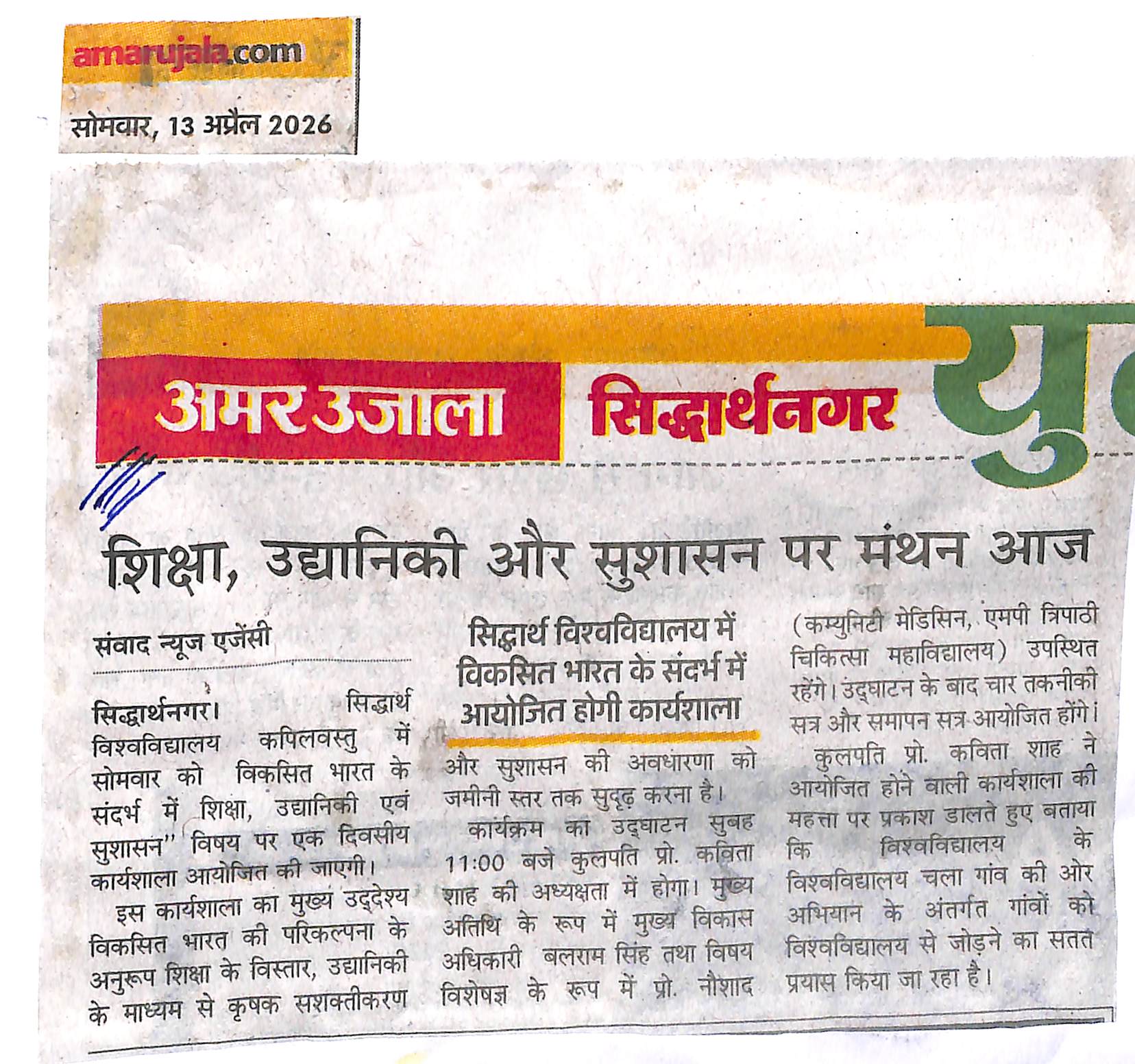 "सिद्धार्थ विश्वविद्यालय में ऐसे बहुत अवसर मिलें जिसमें हम अपने आपको अपने क्षमताओं को और विकसित कर पाएं हैं।, मेरे हौसलों की उड़ान यहीं से यहीं के शिक्षकों के उचित मार्गदर्शन से हुआ।"