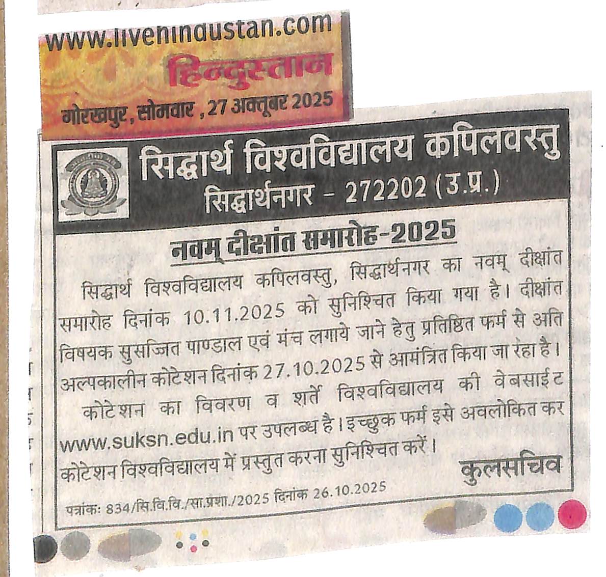 Situated in the abode of Lord Buddha, Siddharth University, Kapilvastu, Siddharth Nagar, U.P., India, has an objective of enlightening and igniting the young minds while blending traditional wisdom with modern education. This center of higher learning is focused on serving the world with the qualified and skilled manpower who have high moral and ethical values. Over a period the University had gained its reputation for its academic distinction and adapting the contemporary practices with agility and speed, in academic process, community engagement, technology, and in governance. The University currently caters to students across the 280 aided, and self-finance constituent colleges as well as in campus Read more...